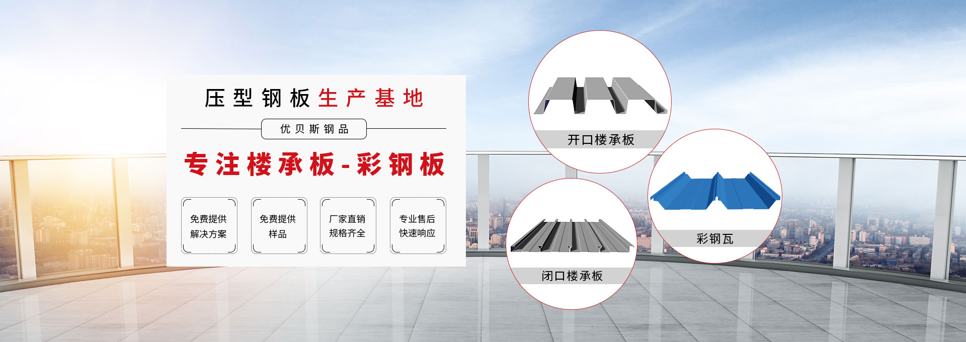 無錫優(yōu)貝斯鋼品有限公司主要生產:樓承板,鋼承板,免澆筑樓承板,壓型鋼板,彩鋼板,閉口樓承板,開口樓承板,縮口樓承板價格優(yōu)惠及相關的鋼結構輔材。 優(yōu)貝斯始終追蹤并處于鋼結構建筑及其圍護系統(tǒng)技術的發(fā)展前沿,預制金屬屋墻板面和樓承板系統(tǒng)。優(yōu)貝斯擁有的技術和豐富實踐一直為客戶提供質量的產品、鋼建筑系統(tǒng)解決方案和貼心的服務。